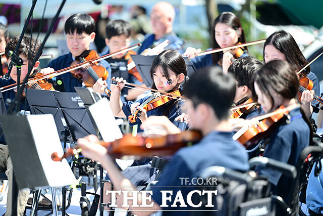 이어 상상휠하모니 오케스트라가 무대에 올라 △도레미송 △별에 소원을 빌 때 △라데츠키 행진곡 등을 연주하며 아름다운 선율을 선보였다.