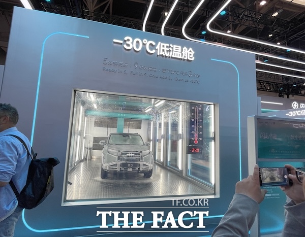 BYD(비야디)는 이번 모터쇼에서 초고속 충전 기술의 극한을 적용한 2세대 배터리 '블레이드'를 공개했다. 10%에서 70%까지 충전하는데 5분, 97%까지는 불과 9분이 걸린다. 또한 영하 30도라는 극한의 환경에서도 12분이면 완충이 가능하다는 것이 비야디의 설명이다.