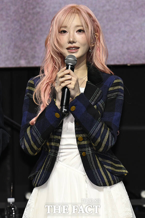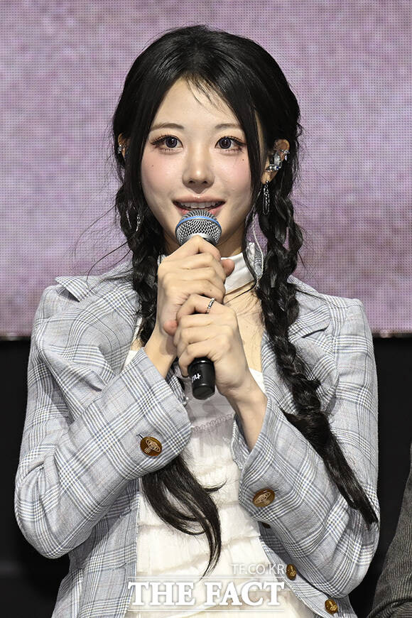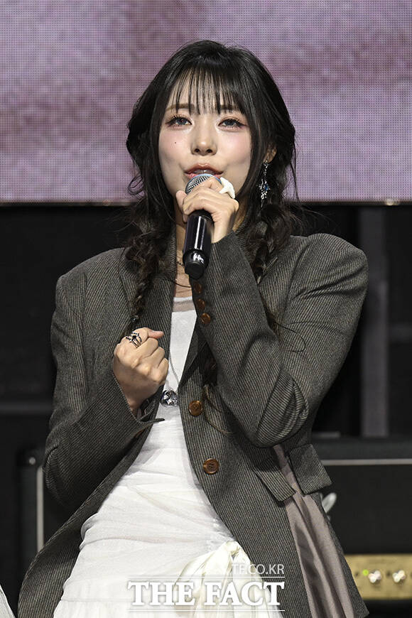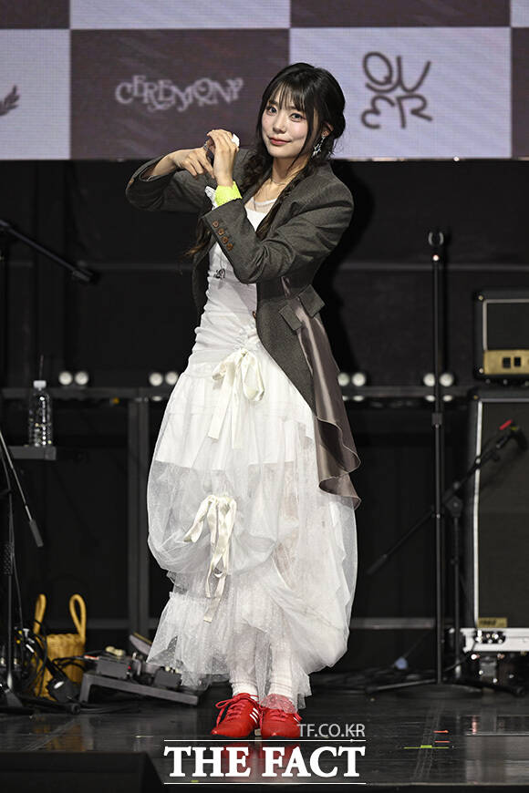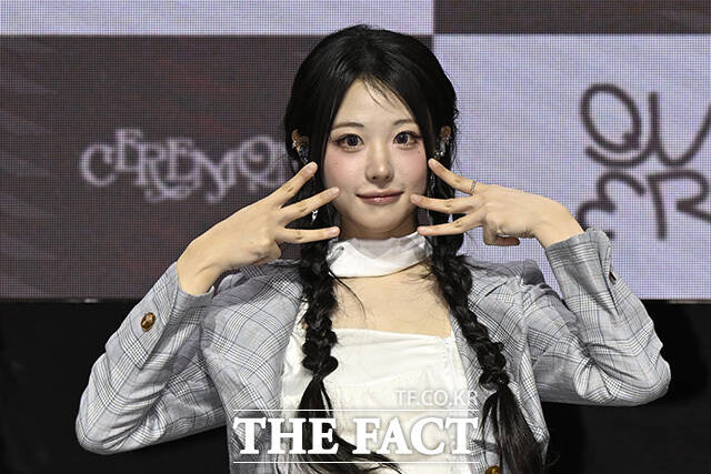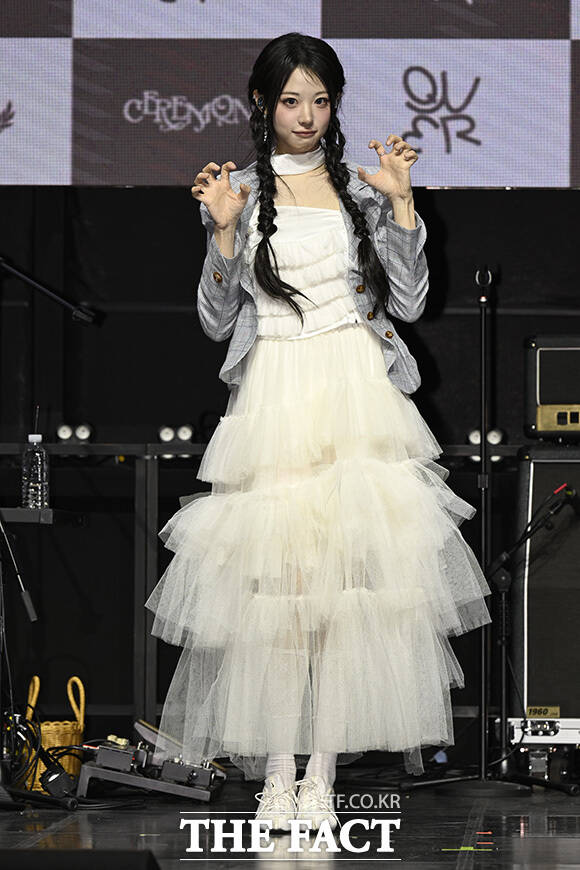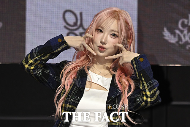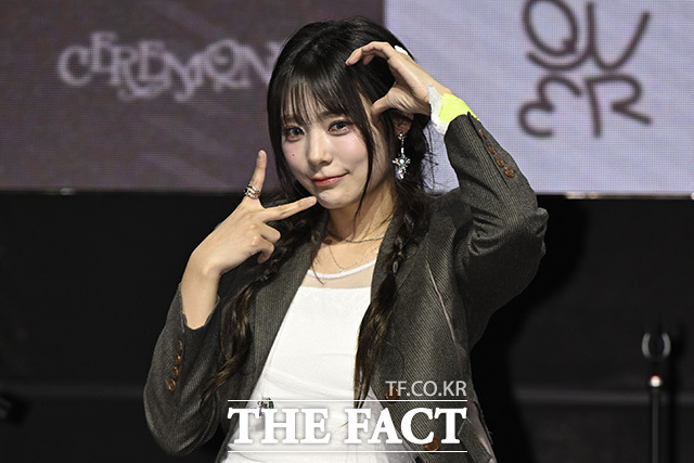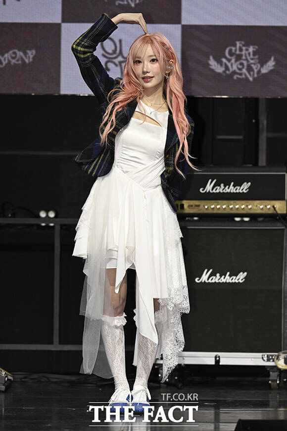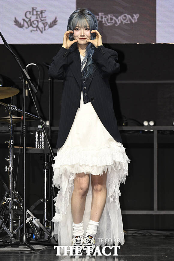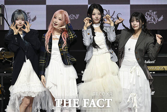[더팩트 | 송호영 기자] 밴드 QWER(큐더블유이알)의 쵸단과 마젠타, 히나, 시연(왼쪽부터)이 27일 오전 서울 서대문구 예스24 원더로크홀에서 열린 미니 4집 'CEREMONY(세리머니)' 발매 쇼케이스에 참석해 포즈를 취하고 있다.