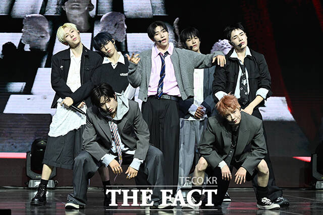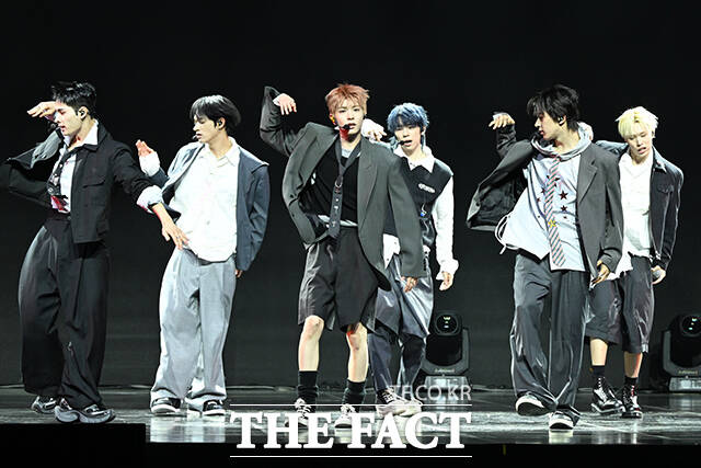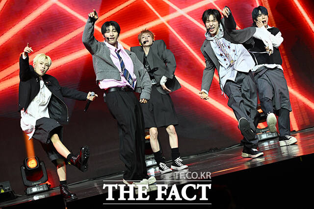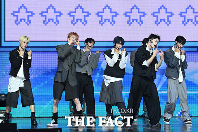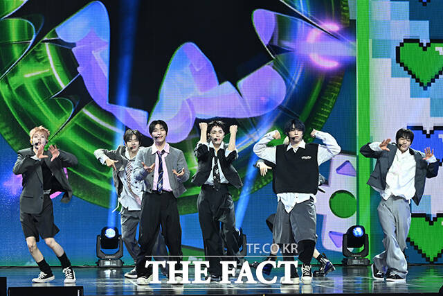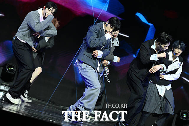 [더팩트 | 김성렬 기자] 그룹 넥스지(NEXZ)가 27일 오후 서울 용산구 블루스퀘어 우리WON뱅킹홀에서 열린 싱글 2집 '음츠크'(Mmchk) 발매 기념 쇼케이스에서 화려한 무대를 선보이고 있다.