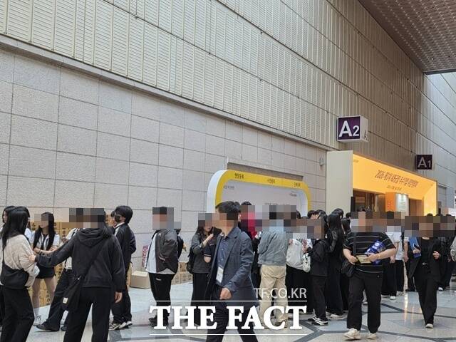 취업박람회가 열린 코엑스 A홀 앞에는 입장 시간인 오전 10시께 박람회장에 들어가려는 고등학생, 군인, 중장년 등 다양한 사람들이 몰렸다. 지난해와 비교해 코스닥상장사, 글로벌 수출입 기업 등이 늘어났고, 이날 현장에는 500~600명 정도 기업 인사 담당자가 참석했다.