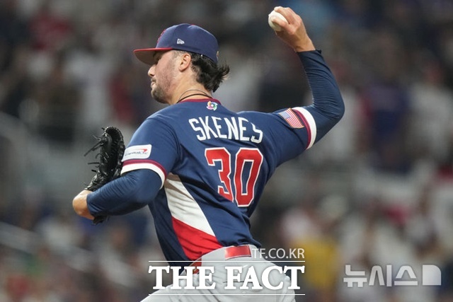 미국 선발 투수 폴 스킨스는 2회말 불의의 일격을 맞는다. 도미니카공화국 6번 주니어 카미네로에게 주무기인 스플리터를 던졌다가 좌월 솔로 홈런을 허용했다. 스킨스는 지난해 메이저리그 내셔널리그 사이영상 수상자로 평균자책점 1.96을 기록한 최고 투수다. 스킨스는 이후 안정감을 찾고 강력한 포심과 스위퍼로 더 이상의 실점은 하지 않았다. 4⅓이닝 6피안타 1실점을 기록했다.