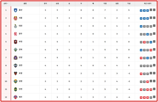 지난해 9위의 부진을 보인 울산HD는 김현석 감독 체제로 팀을 재편한 이후 올 시즌 개막과 함께 깜짝 3연승을 달리고 있다. FC서울보다 다득점에서 앞서 단독 1위을 차지한 울산은 22일 오후 2시 울산문수축구경기장에서 김천을 상대로 4연승을 노린다.