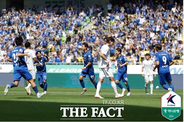 [더팩트 | 박순규 기자] 2026년 4월 25일, 수원월드컵경기장 '빅버드'에 울려 퍼진 종료 휘슬은 단순한 경기 종료 이상의 의미를 담고 있었다. K리그2의 절대강자로 군림하며 7연승의 '파죽지세(破竹之勢)'를 달리던 부산 아이파크를 상대로 거둔 수원 삼성의 3-2 승리. 이는 올 시즌 '명가 재건'이라는 무거운 숙제를 안고 출발한 수원 삼성과 이정효 감독에게 있어, 단순한 승점 3점 이상의 '성장 자양분'이 되기에 충분했다. 또한 단순한 상위권 맞대결이 아니라 리그 흐름을 뒤흔들 ‘변곡점’으로 보인다.