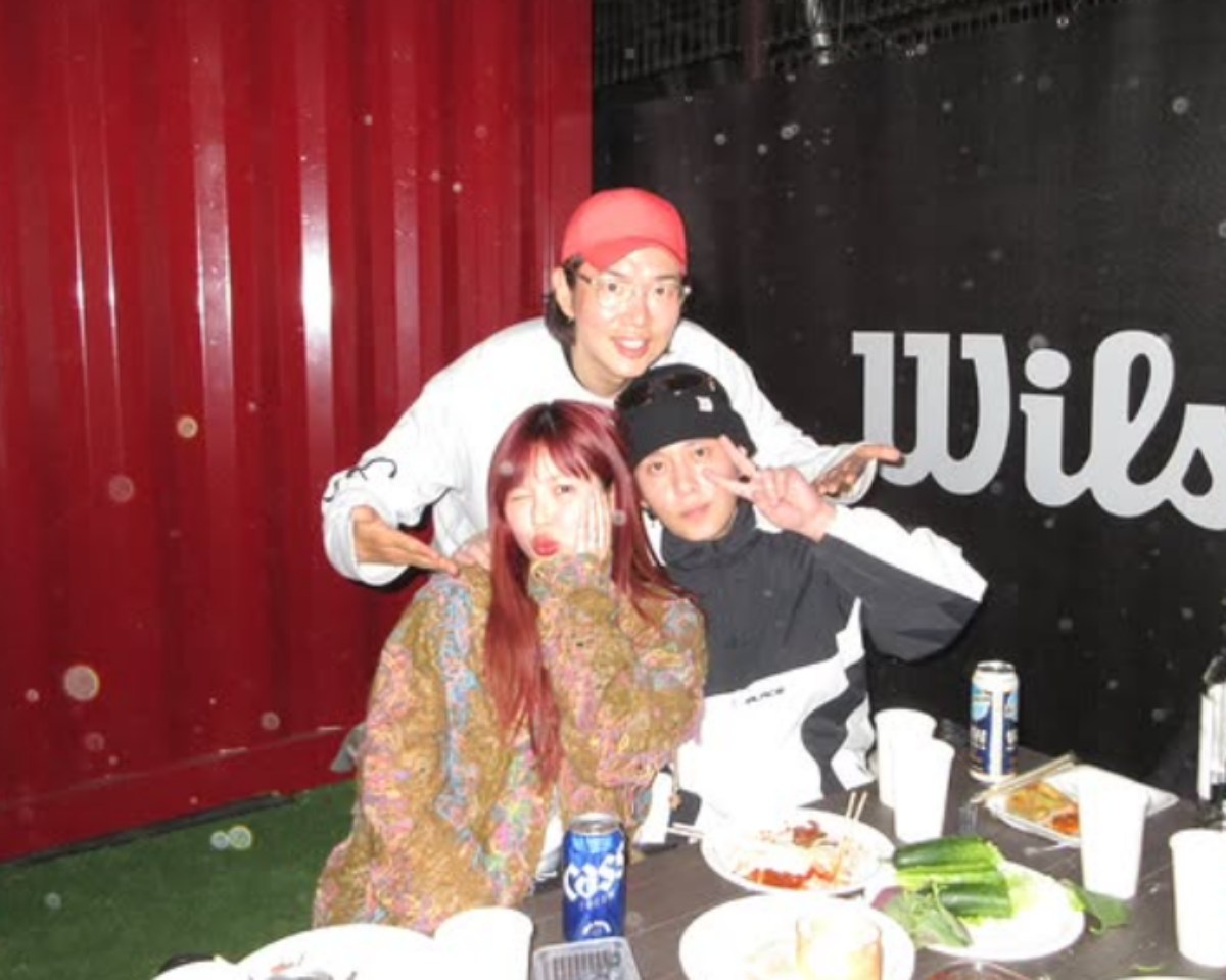 힘께 공개된 사진에는 빨간색 볼캡을 착용하고 있는 장성규, 그런 장성규 앞에서 나란히 의자에 앉아 포즈를 취하고 있는 현아-용준형 부부의 모습이 담겨 있다.