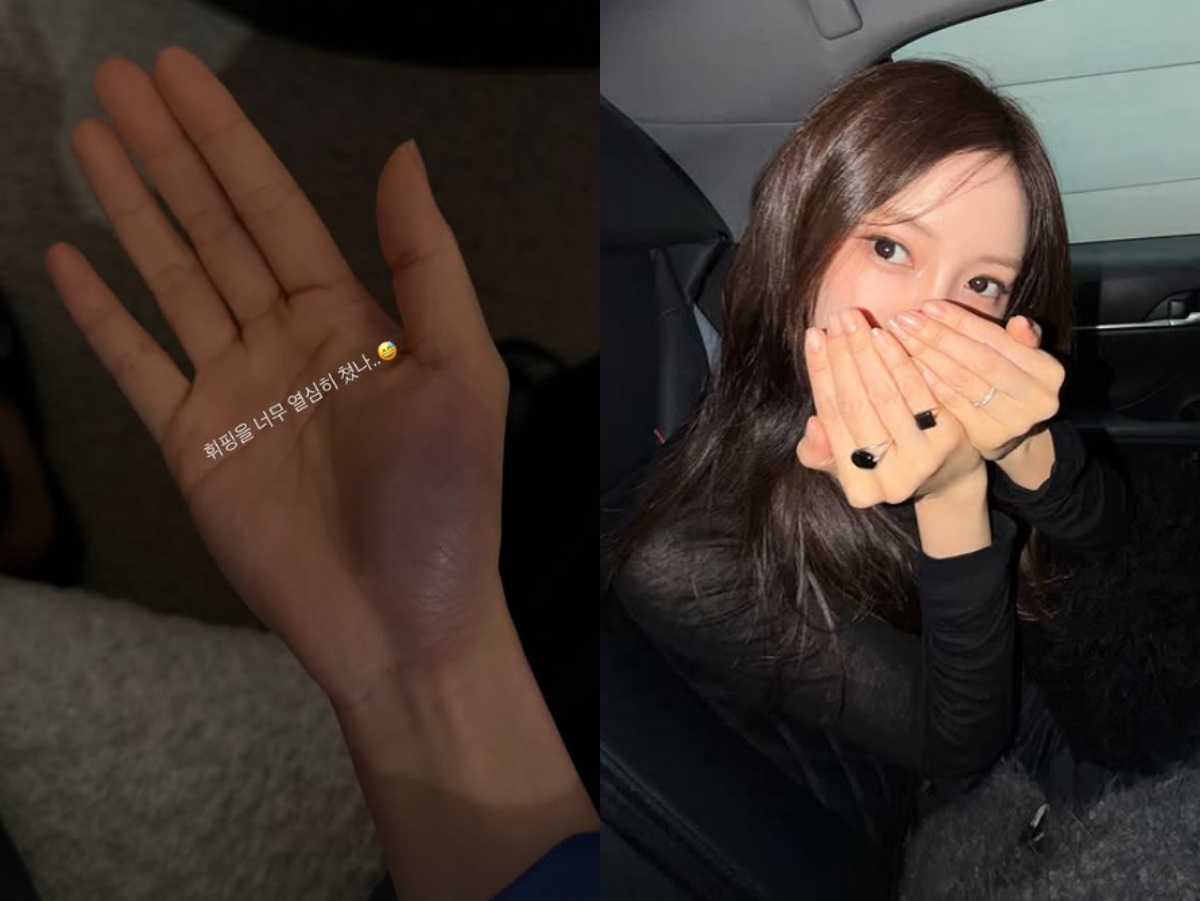 공개된 사진에는 효민의 오른손 손바닥이 담겨 있으며, 엄지손가락 아래 부분이 시퍼렇게 멍이 들어 있어 시선을 모은다.