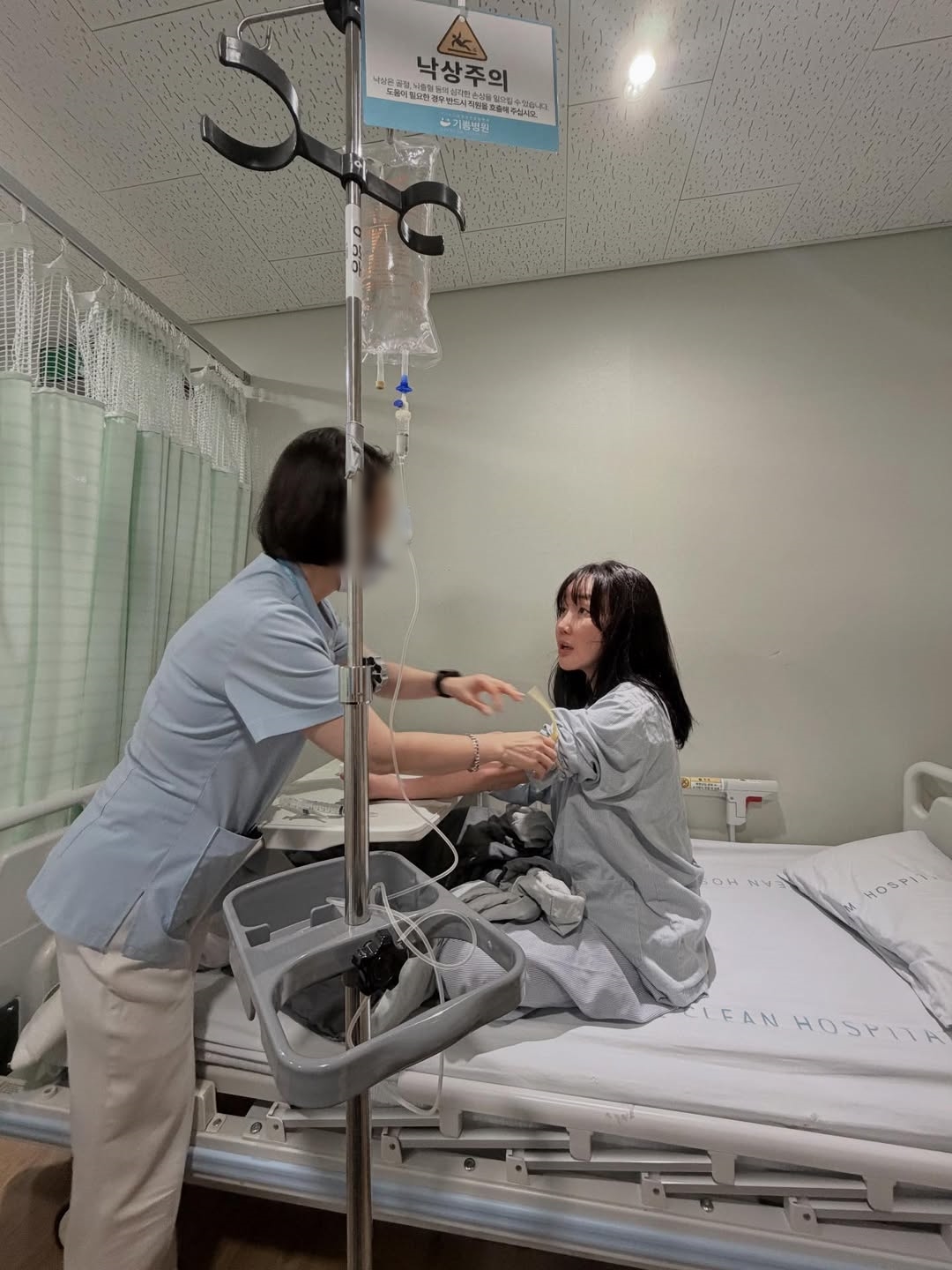 공개된 사진에서는 병원 입원실에 앉아 수액을 맞고 있는 낸시랭의 모습이 눈길을 끈다. 낸시랭은 "병원에 모든 사람이 다 와서 하는데 혈관이 안 잡혀요"라며 지인에게 상황을 알리기도.