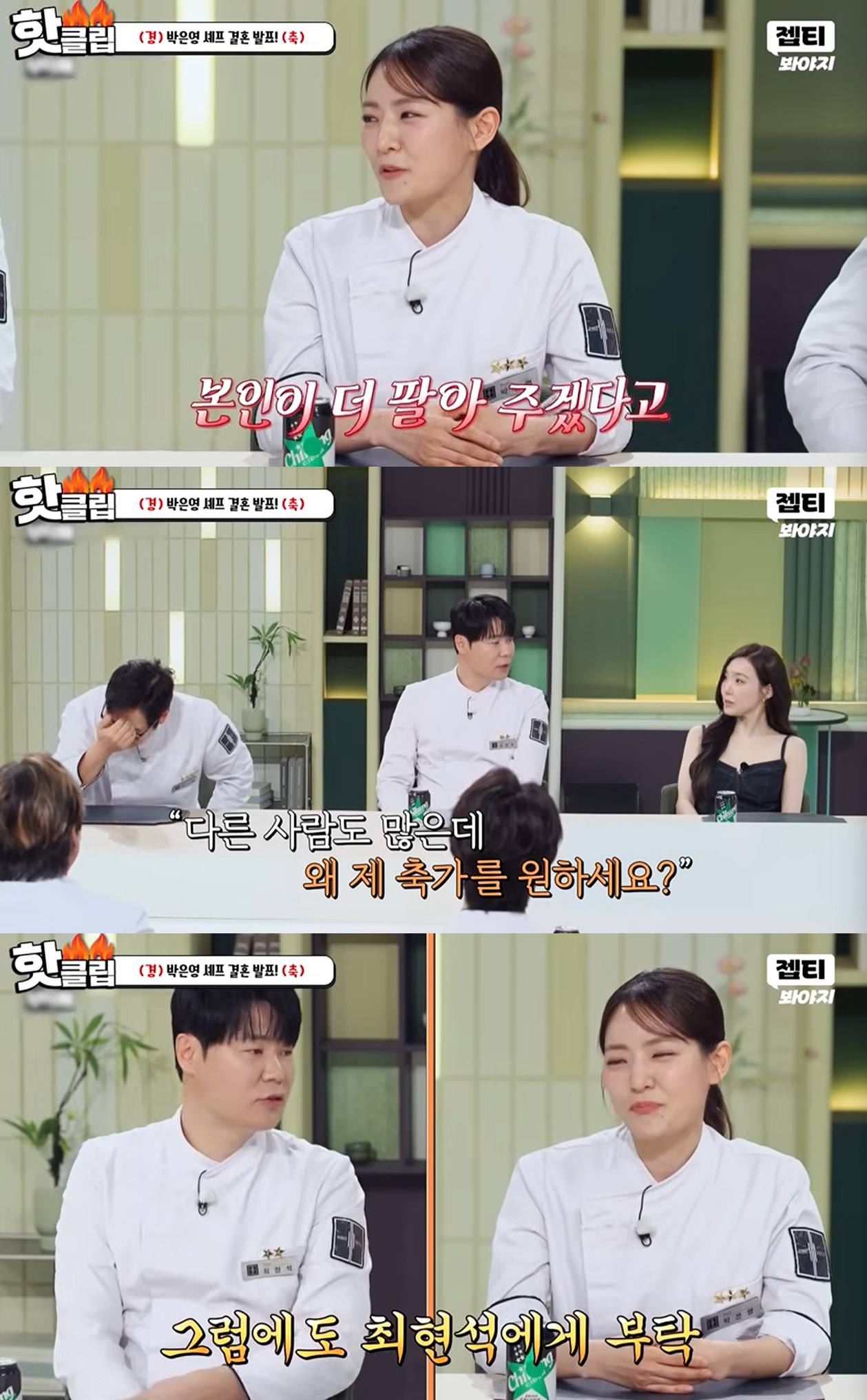 이에 박은영은 "축가가 필요한데 셰프님이 원하시기도 하고"라고 말해 웃음을 더했다.