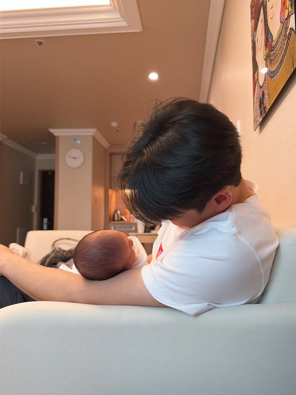 공개된 사진에서는 오상진이 이틀 전 태어난 둘째 아들을 애틋한 자세로 빤히 바라보고 있어 눈길을 끌었다.