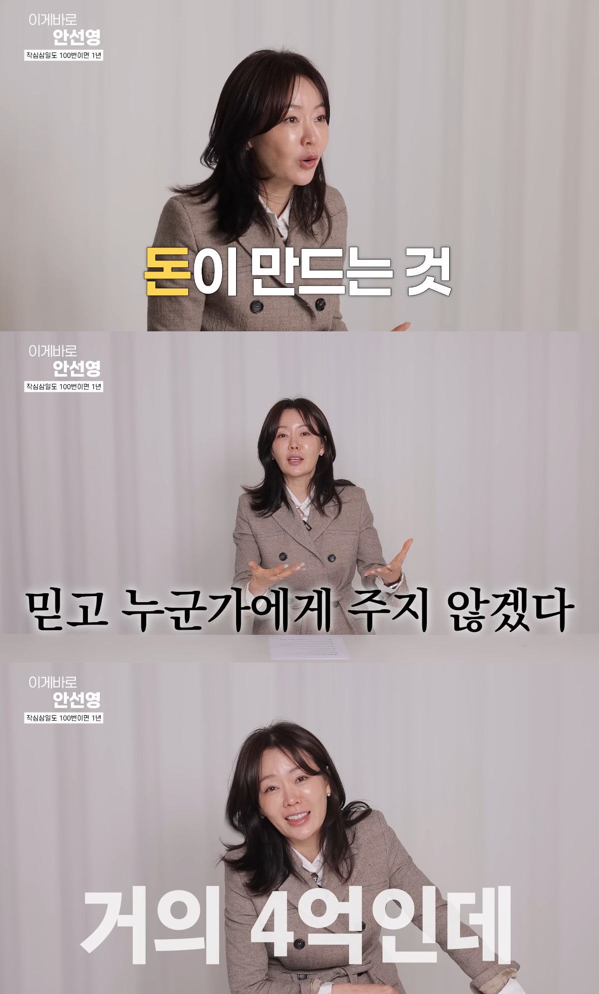 이어 안선영은 "횡령이라는 사건을 겪으면서 어떤 결심을 했냐면 '사람은 실수를 하지만 범죄까지 가는 반복 행위는 돈이 만드는 거다'라는 걸 뼈저리게 느꼈다. 그래서 '나는 돈에 관련된 것들은 절대 믿고 누군가에게 주지 않겠다'고 다짐했다. 가까운 사람과 돈 거래도 하지 않을 것"이라고 횡령 피해 이후 결심을 드러냈다.