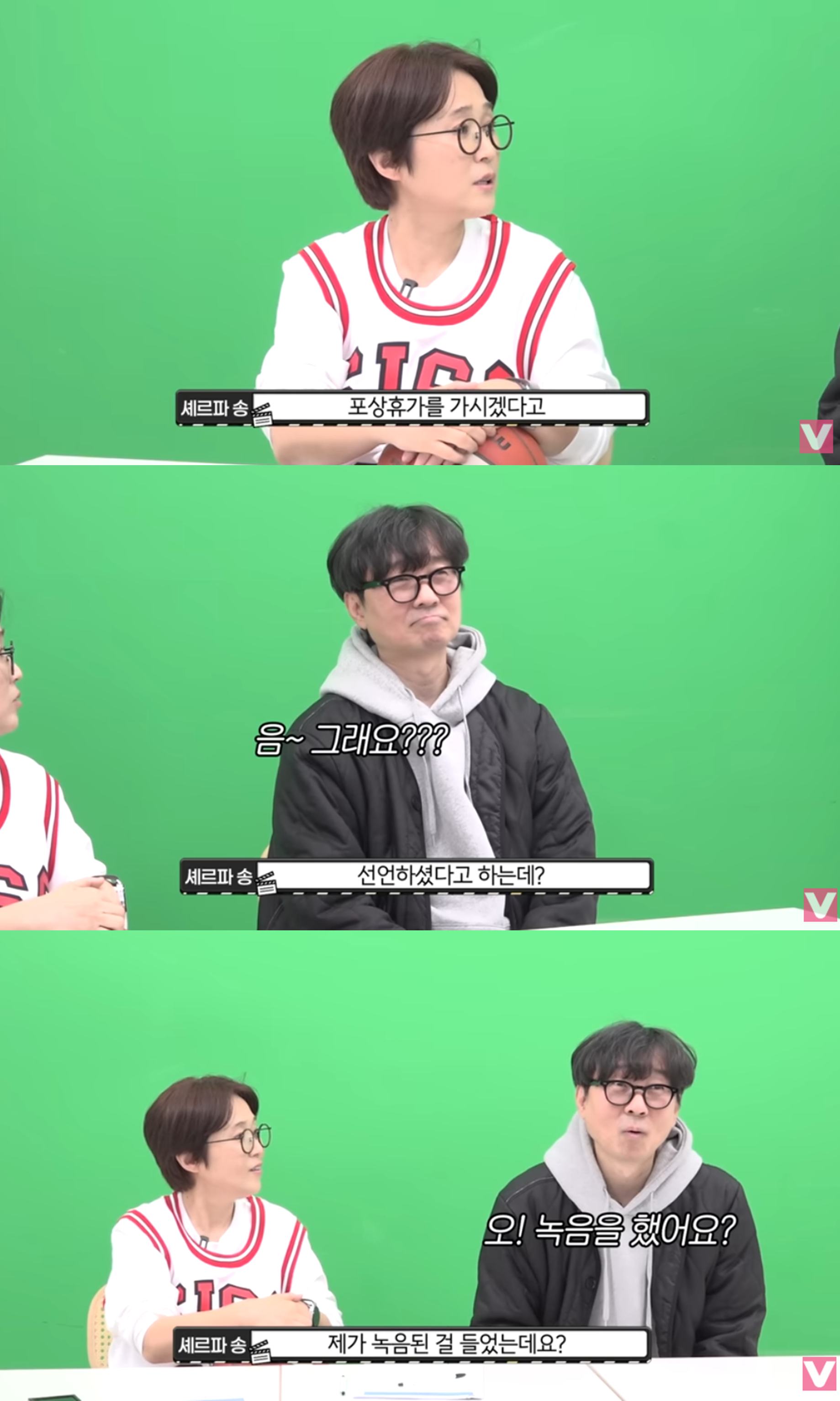 이어 송은이는 "'씨네마운틴' 원년 제작진과 포상 휴가를 가겠다고 선언했다던데, 녹음된 걸 들었다"며 당시 음성을 공개했다.