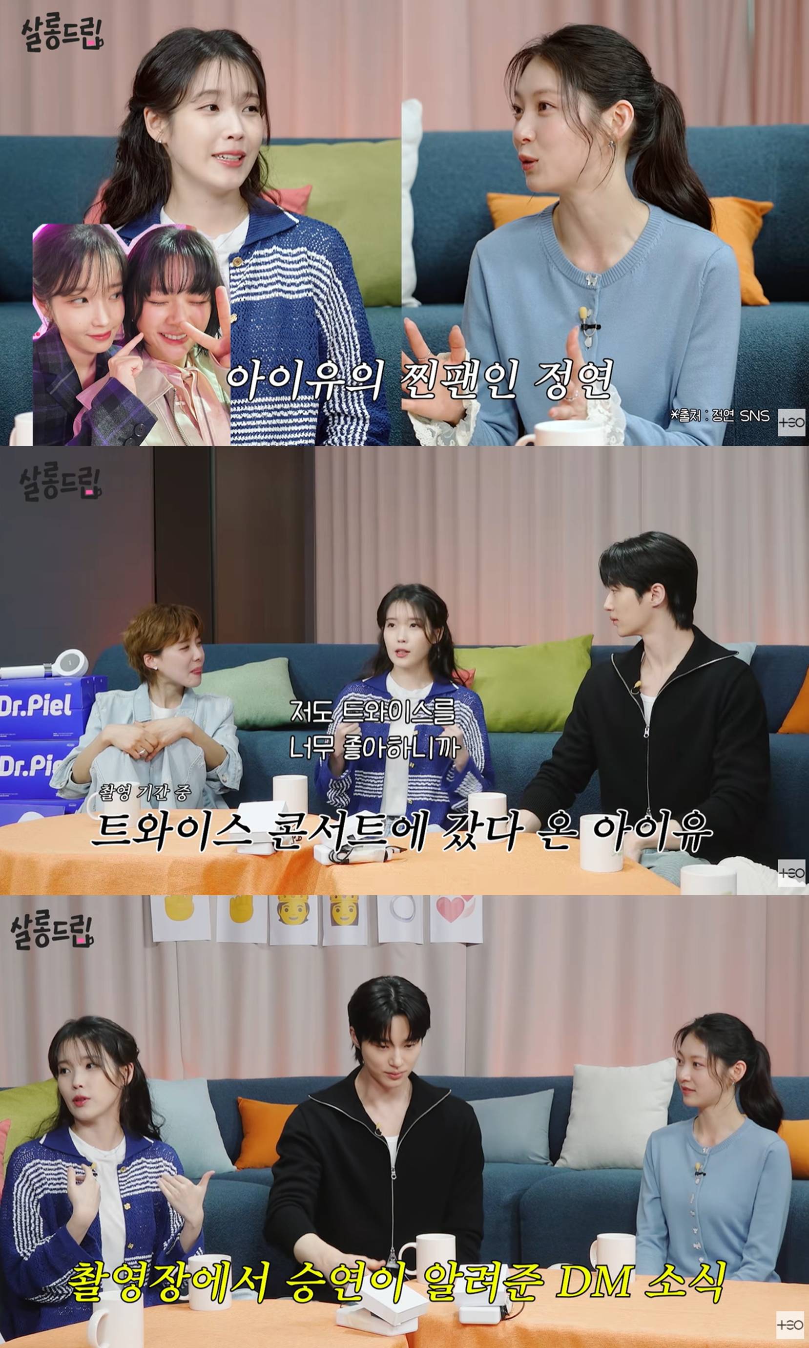 이에 아이유는 "트와이스를 너무 좋아해서 갔다"며 "정연 씨가 이후 DM을 보냈는데 확인을 못 해서 몰랐다는데, 승연 씨가 촬영장에서 알려줘서 뒤늦게 감사 인사를 전했다"고 덧붙였다.