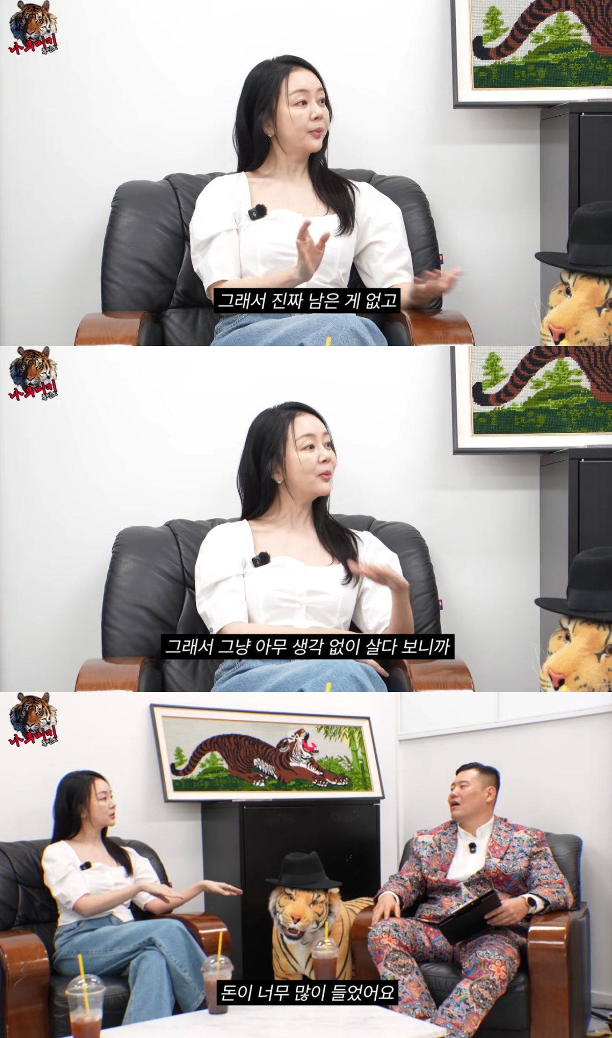 잘 되던 쇼핑몰을 접은 이유에는 "너무 큰 데가 많이 생겨서 가격을 맞추려면 마이너스가 나더라. 접을 때 돈이 너무 많이 들었다"고 설명하며 "난 진짜 남은 게 없다. 또 쓰던 게 있지 않나. 아무 생각 없이 살다 보니까 오늘 여기 있다"고 말했다.