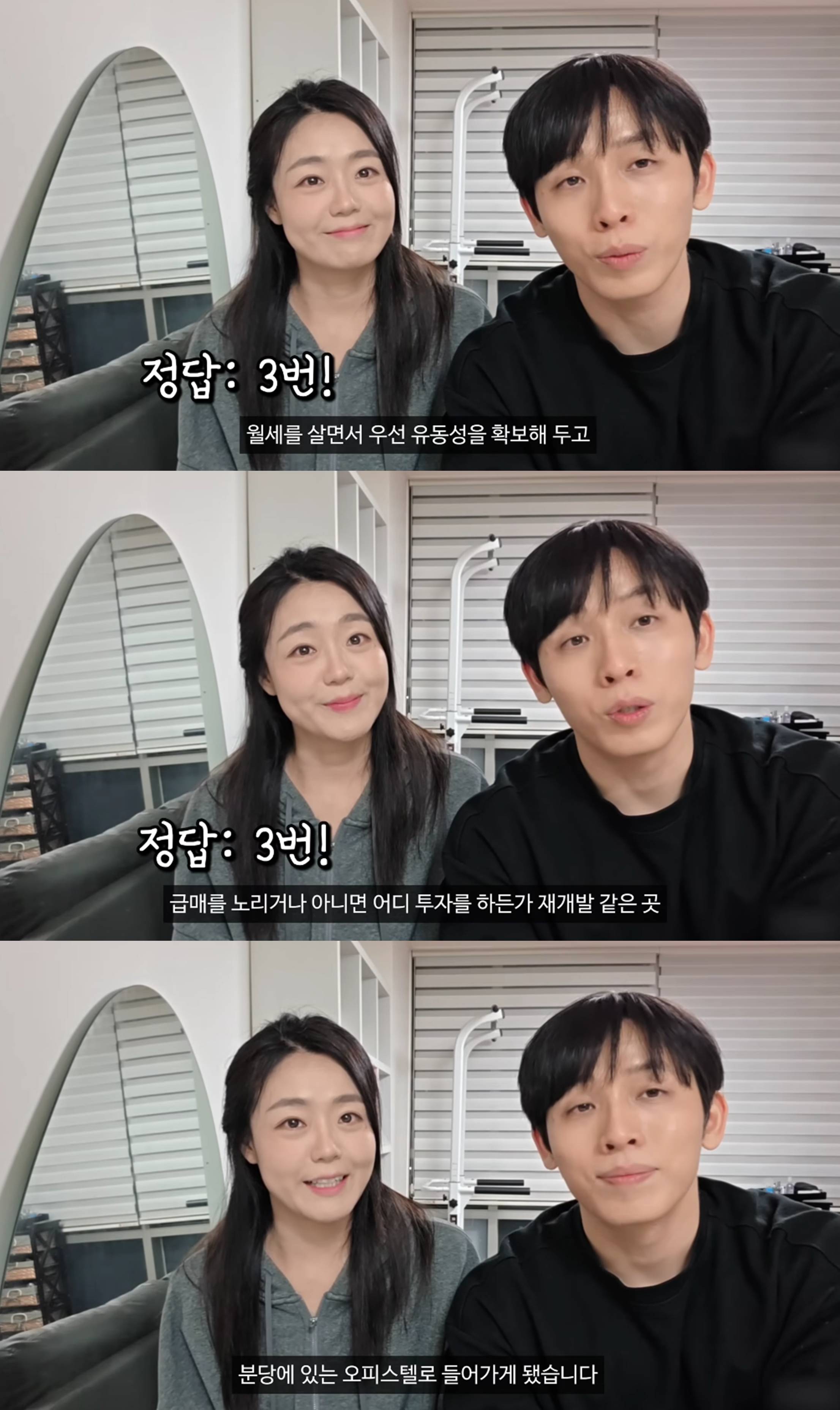 이후 영식은 "세 가지 옵션 중 하나를 선택해 계약했다"며 "우선 월세로 거주하면서 유동성을 확보하고, 이후 급매를 노리거나 투자 또는 재개발 기회를 살펴보려 한다"고 설명했다.