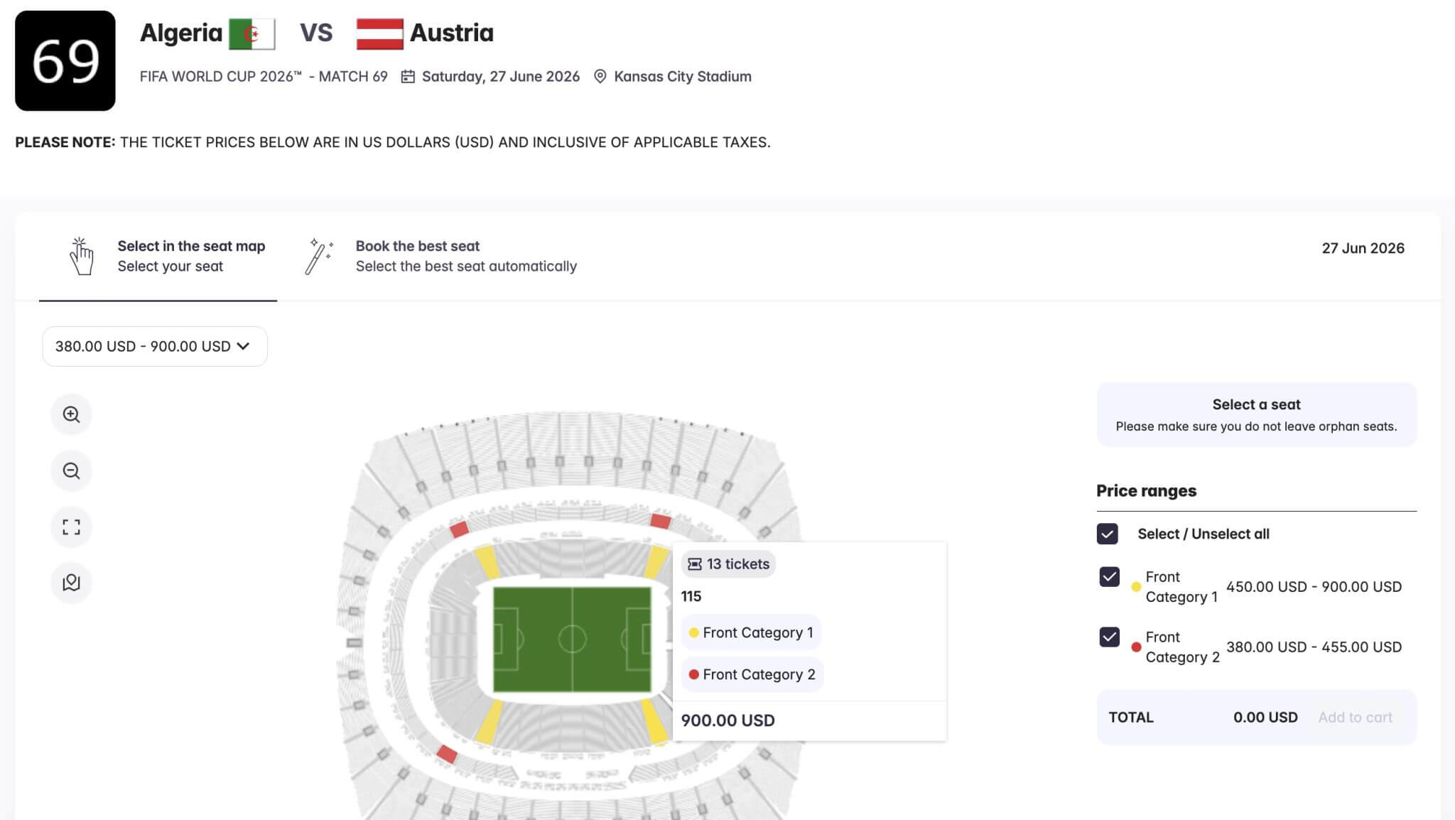 실제로 미주리주 캔자스시티 애로우헤드 스타디움에서 열리는 알제리-오스트리아전의 경우, 경기장 모서리 구역 2열 좌석이 장당 900달러(약 133만원)에 올라왔다. 기존 카테고리 1 가격의 정확히 두 배였다.