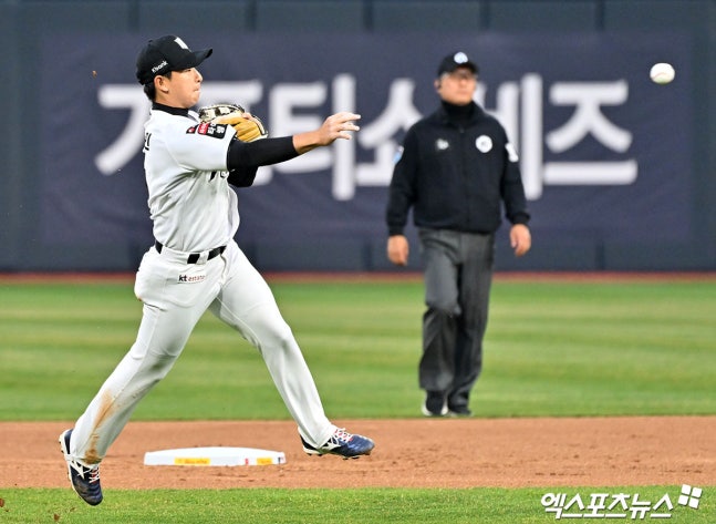 이강철 감독은 "이런 건 잘못됐다. 게임 운영을 봐야 한다"고 지적했다. 그러면서도 "아무 말 안했다. 뭐라고 하지 마라고 했다"며 "상황을 파악하라는 말만 했다"고 밝혔다.