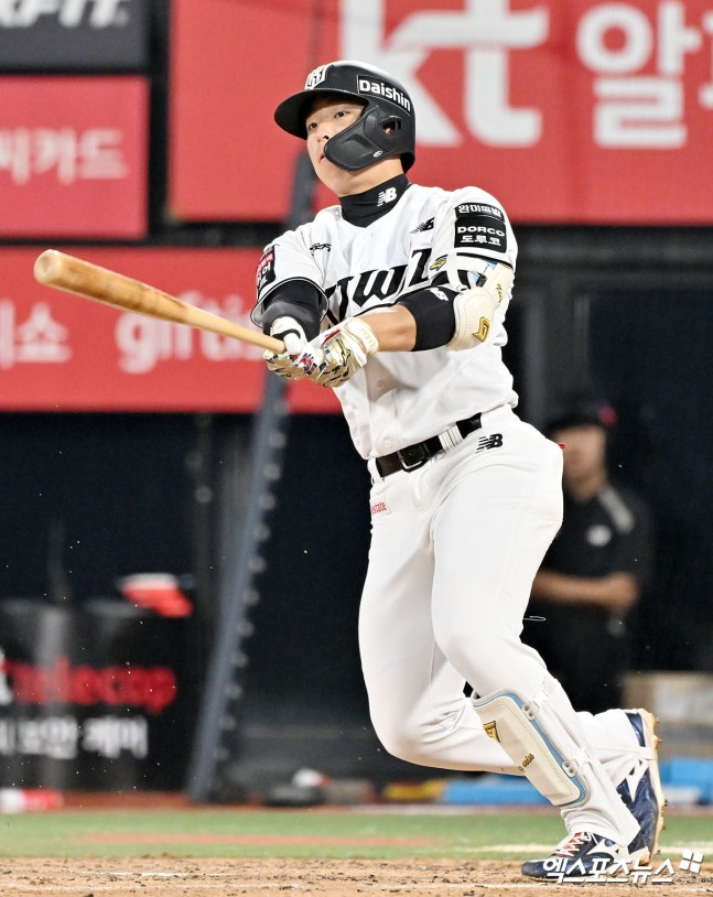 "또 얘기하면 건방 떨 수 있다"고 농담을 던진 이 감독은 "잘하고 못하고를 떠나 무조건 쓰려고 했다"고 했다. 이어 "주위에서 잘한다고 해서 나는 그만해도 될 것 같다. 내가 자랑을 너무 많이 했다"며 미소를 지었다. 그는 "저 정도면 잘하는 게 아닌가"라고 반문하며 "방망이도 궤도가 좋아서 잘 치겠다 싶었다"고 했다.