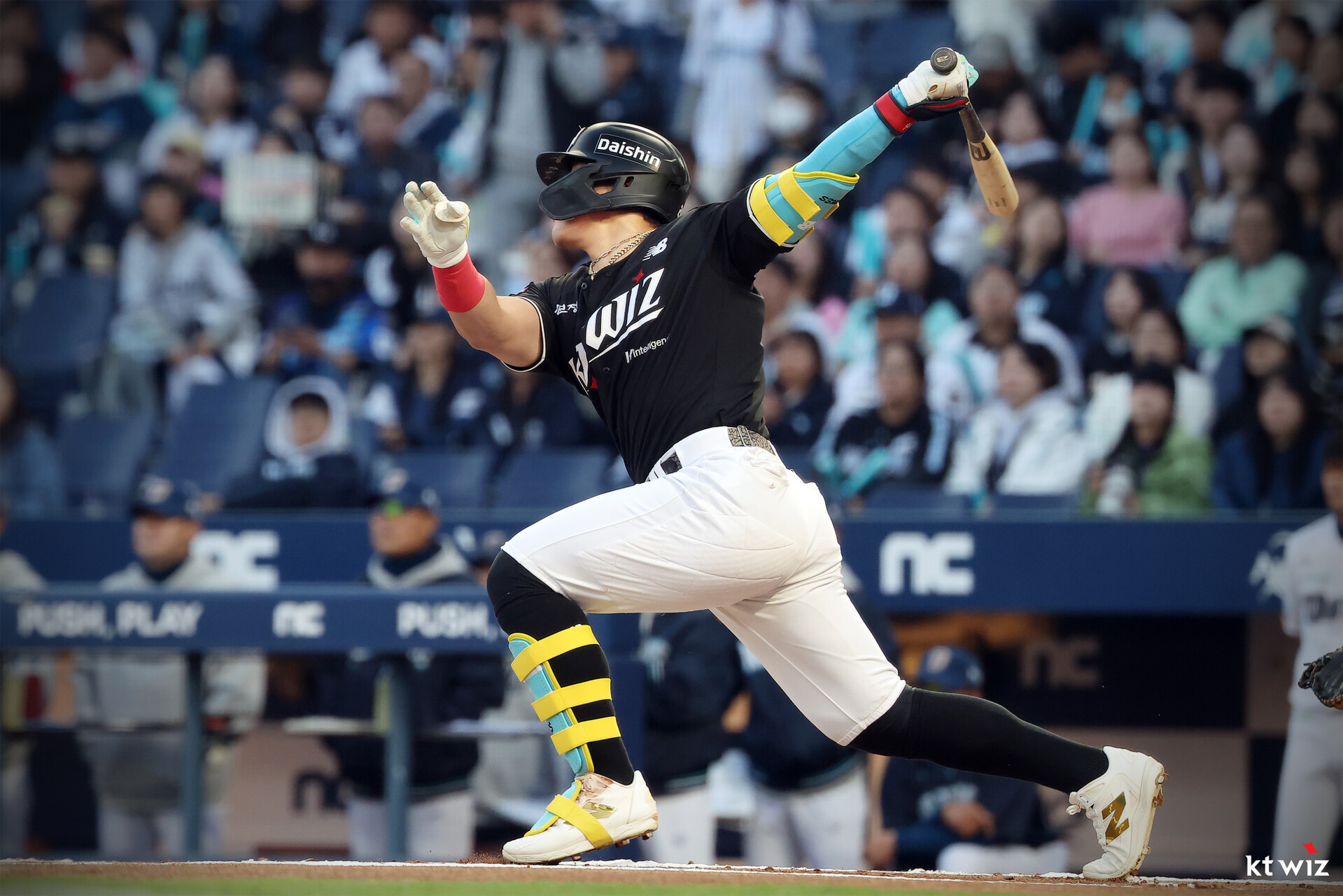 안현민은 1회 2루타에 이어 장성우의 투런 홈런 때 홈을 밟아 득점을 올렸다. 3회에는 우익수 뜬공으로 물러났던 그는 6회 신민혁에게 좌익수 앞 안타를 때려내고 1루로 출루했다.