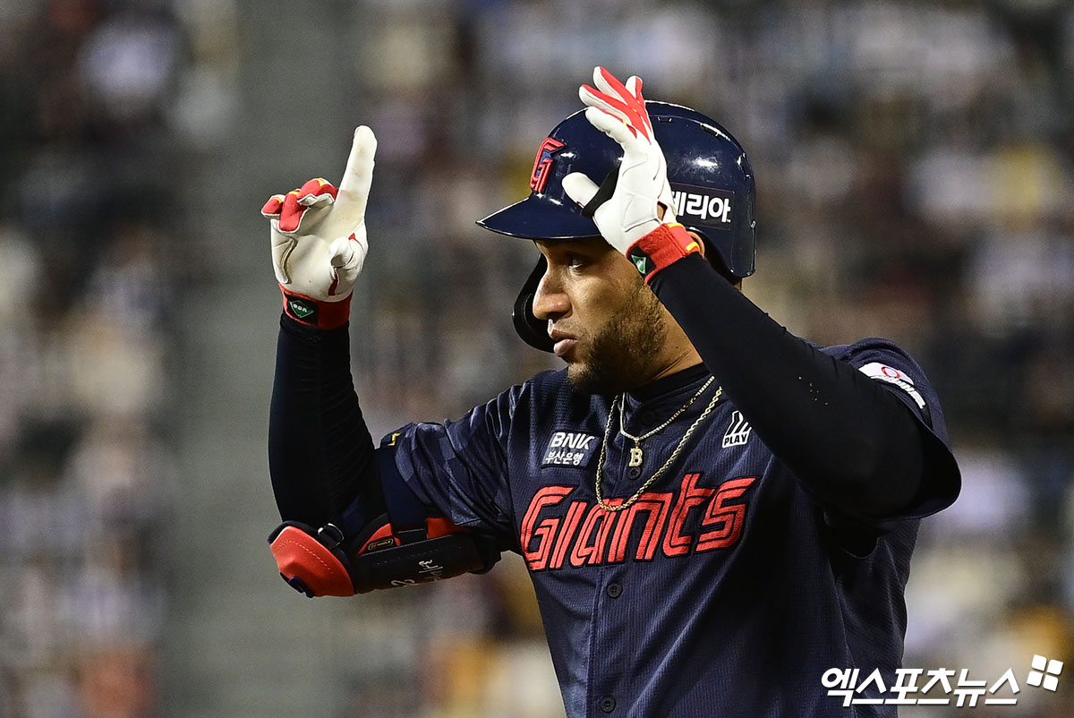 1회초 첫 타석부터 우중간 2루타를 치고 나간 레이예스는 후속타자 노진혁의 진루타와 윤동희의 적시 2루타에 홈 플레이트를 밟으며 선취 득점을 올렸다.