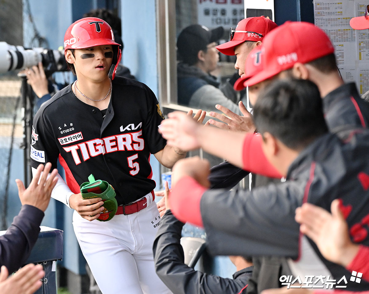 KIA는 1점을 더 보탰다. 김도영의 유격수 땅볼 때 1루주자 김규성만 2루에서 아웃됐고, 1사 1루에서 나성범의 2루타 때 1루주자 김도영이 홈까지 질주했다. KIA가 경기 개시 후 처음으로 리드를 잡는 순간이었다.