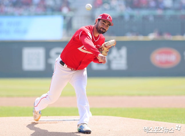 이날 SSG는 상대 에이스 엘빈 로드리게스를 만났다. 로드리게스는 시속 157km/h의 빠른 볼을 뿌리며 스프링캠프부터 1선발로 기대를 모았다. 개막전에서도 5이닝 무실점으로 승리투수가 됐다.