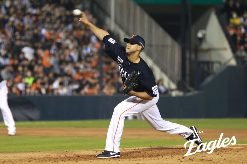 에르난데스는 1회와 2회 사사구로 주자를 한 명씩 내보내면서도 추가 진루를 억제하며 안정감 있는 피칭을 이어갔다. 3회말엔 선두타자 박준순에게 빗맞은 내야안타를 내줬으나, 후속타자 김민석을 내야뜬공, 박찬호를 6-4-3 병살타로 돌려세우며 세 타자로 이닝을 마무리했다.