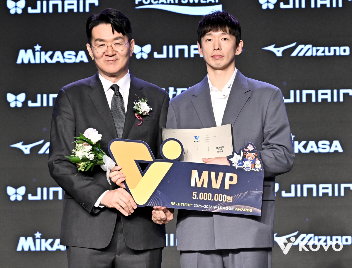 -무대 위에서 황승빈에 관한 이야기를 하고 내려왔는데, 이유는.▲(황)승빈이가 젊을 때 대한항공에서 보조 세터로 있었는데, 그때 승빈이와 항상 잘 어울리고 잘 지냈다. 승빈이는 의욕이 넘친다. 그때 계속 주전으로 있었지만, 승빈이는 경기 뛰고 싶은 욕심과 해내고 싶은 욕심이 많은 선수였다. 승빈이가 다른 팀에 간다면 주전 세터로 뛸 선수라고 생각했다. 그때보다 더 성장하면서 지금 주전 세터가 됐다. 이렇게 챔피언결정전에서 패하면서 좌절을 겪었을 때 승빈이는 더 성장할 것이다.