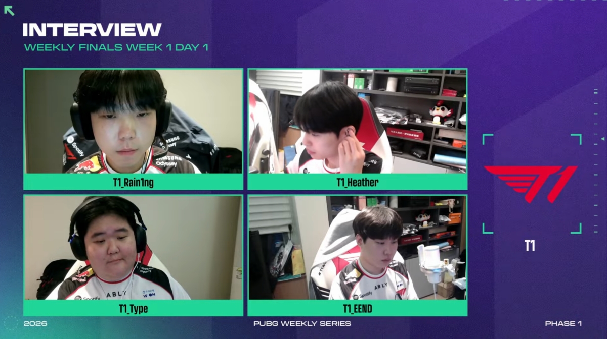 (엑스포츠뉴스 이정범 기자) '2026 PWS: 페이즈 1' T1이 1주 차 '위클리 파이널' 1일 차 1위에 올랐다.
