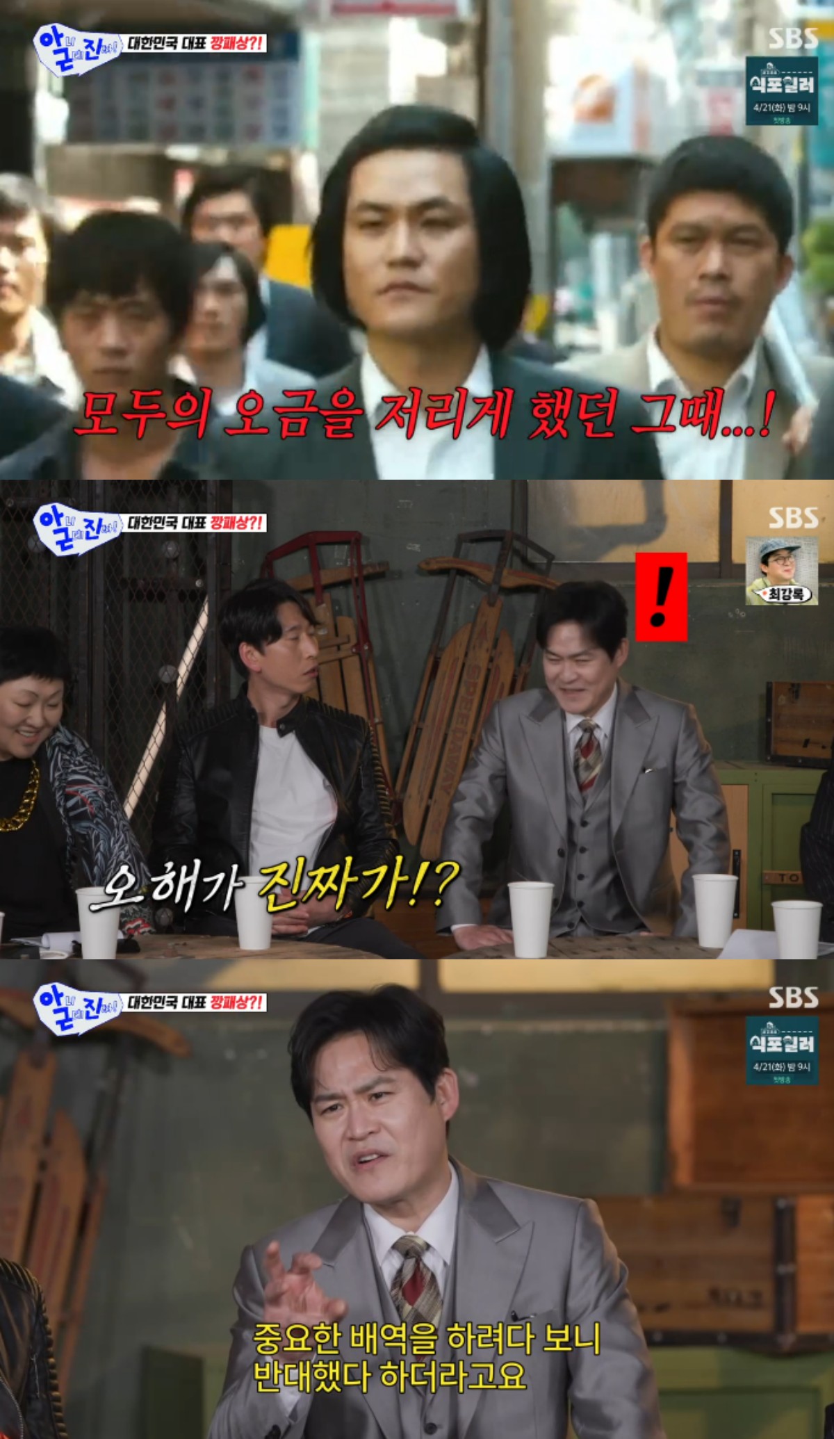 김성균은 "오해를 많이 받았다. 솔직히 연기를 편안하게 했다"면서 웃었고, 이상민은 '범죄와의 전쟁' 오디션 때 어떻게 했는지 궁금해했다.