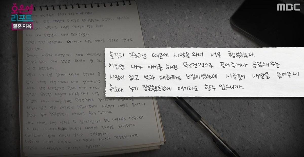 아내는 "내 얘기를 들어주는 사람도 있고, 관심을 가져주는 사람도 있고 그래서 잠깐 꿈을 꾸는 것 같았다. 제작진이 있는 순간이 너무 꿈같았다"며 제작진에 감사함을 표현했다.