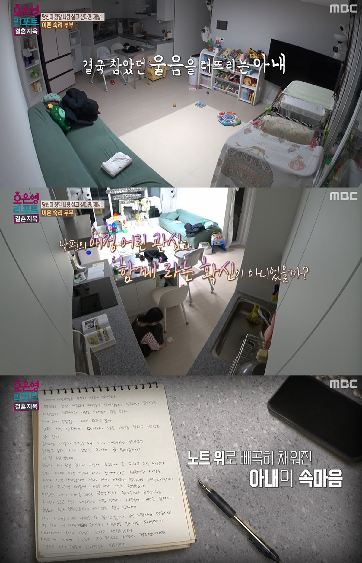 아내는 "남편이 싸우면 가출을 한다. 바리바리 싸서 집을 나간다. 나만 이 지옥같은 현실에 버려둔다는 생각이 들어서 예전에는 나보고 죽으라는 건가라는 생각까지 했다"며 눈물을 흘렸다.