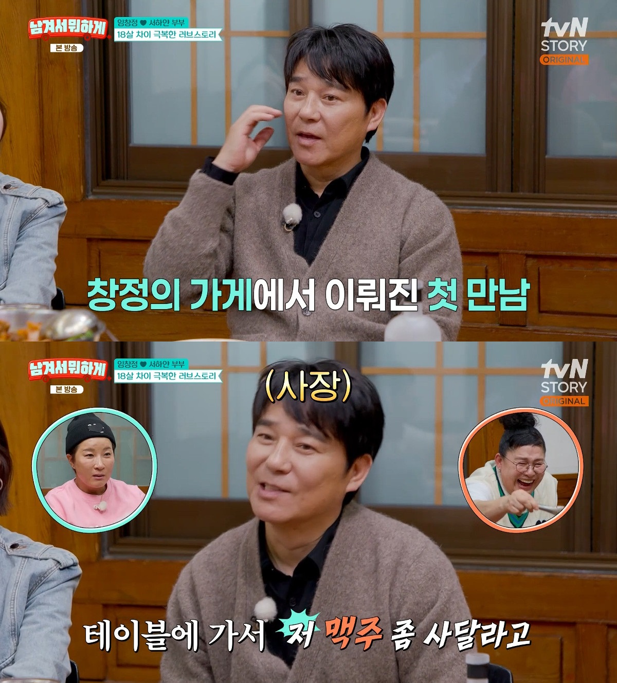 임창정은 "제가 운영하던 가게에 놀러 왔다. 손님으로 온 아내를 보고 '맥주를 사 달라'고 했다. 그래야 웃길 수 있을 것 같았다"며 아내 서하얀과 만남 스토리를 풀어냈다.