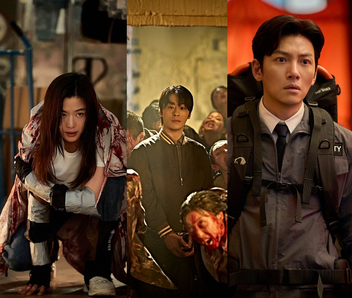 캠핑 지게에 누나 최현희(김신록)를 업고 폴대를 든 채 생존자들의 선두에 선 최현석(지창욱)의 스틸에서는 누나를 지키기 위한 그의 절박함이 느껴진다.