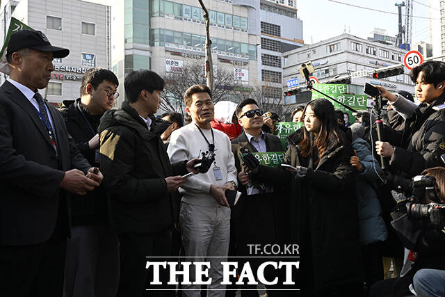 전한길, 경찰 출석 전 "이 대통령 비판 말라는 의도" [TF사진관]