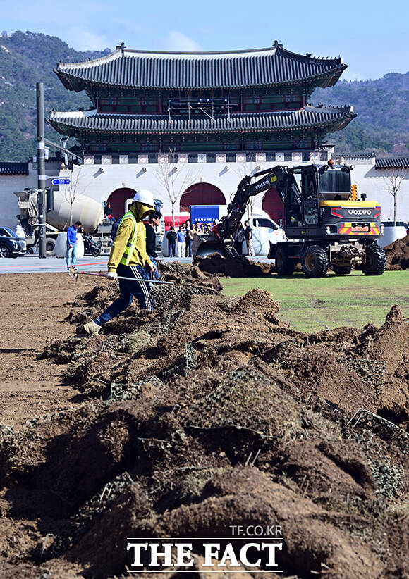 봄맞이 잔디 교체 작업중인 광화문광장 [포토]