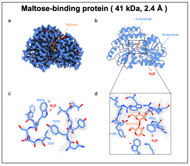 특히 노벨상 수상자인 리처드 헨더슨이 1995년 제시한 이론에 따르면 Cryo-EM으로 분석 가능한 단백질의 최소 크기는 약 38kDa이며, 지금까지 보고된 가장 작은 크기의 Cryo-EM 구조도 42kDa 수준으로, 38kDa는 사실상 한계 크기로 여겨져 왔다.
