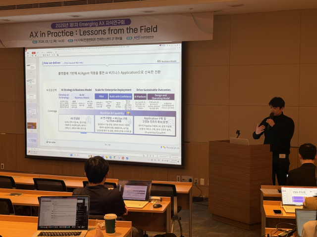 AI 전환(AX) 전문 기업 몬드리안에이아이(Mondrian AI, 대표 홍대의)는 화지민 상무(CTO)가 지난 12일 서울 여의도 FKI 타워에서 열린 ‘2026년 제1차 Emerging AX 지식연구회’에 첫 번째 발제자로 참여해 기업의 성공적인 AX 전략을 발표했다고 밝혔다.