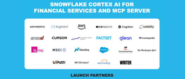 스노우플레이크는 금융을 포함해 모든 산업군에서 기업들이 활용할 수 있는 관리형 ‘MCP 서버(Model Context Protocol Server)’도 퍼블릭 프리뷰로 새롭게 제공한다. MCP 서버는 기업이 자사 내부 전용 독점 데이터와 파트너사의 서드파티 데이터를 분리해 스노우플레이크 내에서 안전하게 활용하고, 앤트로픽(Anthropic), 크루AI(CrewAI), 세일즈포스 에이전트포스 등 애플리케이션 및 에이전트 플랫폼과의 연결을 통해 컨텍스트가 풍부한 AI 에이전트와 애플리케이션을 구축할 수 있도록 지원한다.