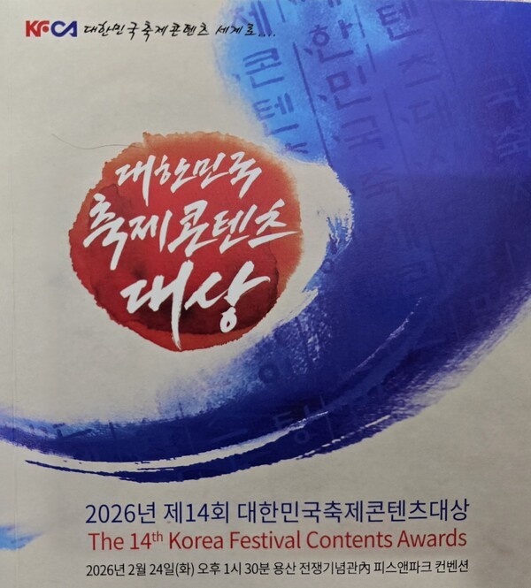 [투어코리아=하인규 기자] 대한민국 대표 축제 시상식인 ‘2026 대한민국축제콘텐츠대상(The 14th Korea Festival Contents Awards)’이 오는 2월 24일(화) 오후 1시 30분, 서울 용산구 피스앤파크컨벤션에서 개최될 예정이다.
