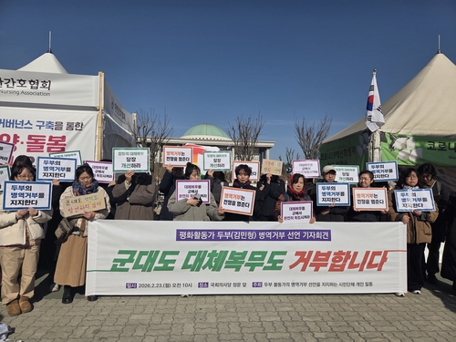 입영일 맞은 20대, 국회 앞 병역거부 선언…"대체복무도 거부"