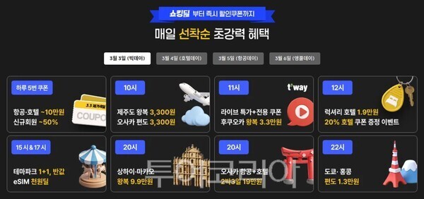 글로벌 OTA들은 ‘시간대별 특가’로 접속을 유도하는 전략을 강화하고 있다. 트립닷컴은 이달 6일까지 ‘3.3 메가세일’을 열고 항공·호텔·티켓 등 전 상품군 할인에 나섰다.