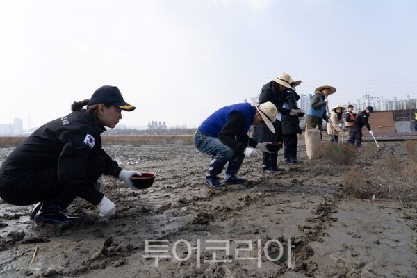 이번 활동은 갯벌 생태계 복원과 탄소 흡수원 확대를 위한 ‘하이 블루카본(Hi Blue Carbon)’ 프로젝트의 일환으로, 이날 유관기관 직원 및 시민 50여명이 참여해 100kg 규모의 해홍 종자를 파종하며 염생식물 군락지 조성의 시작을 알렸다.