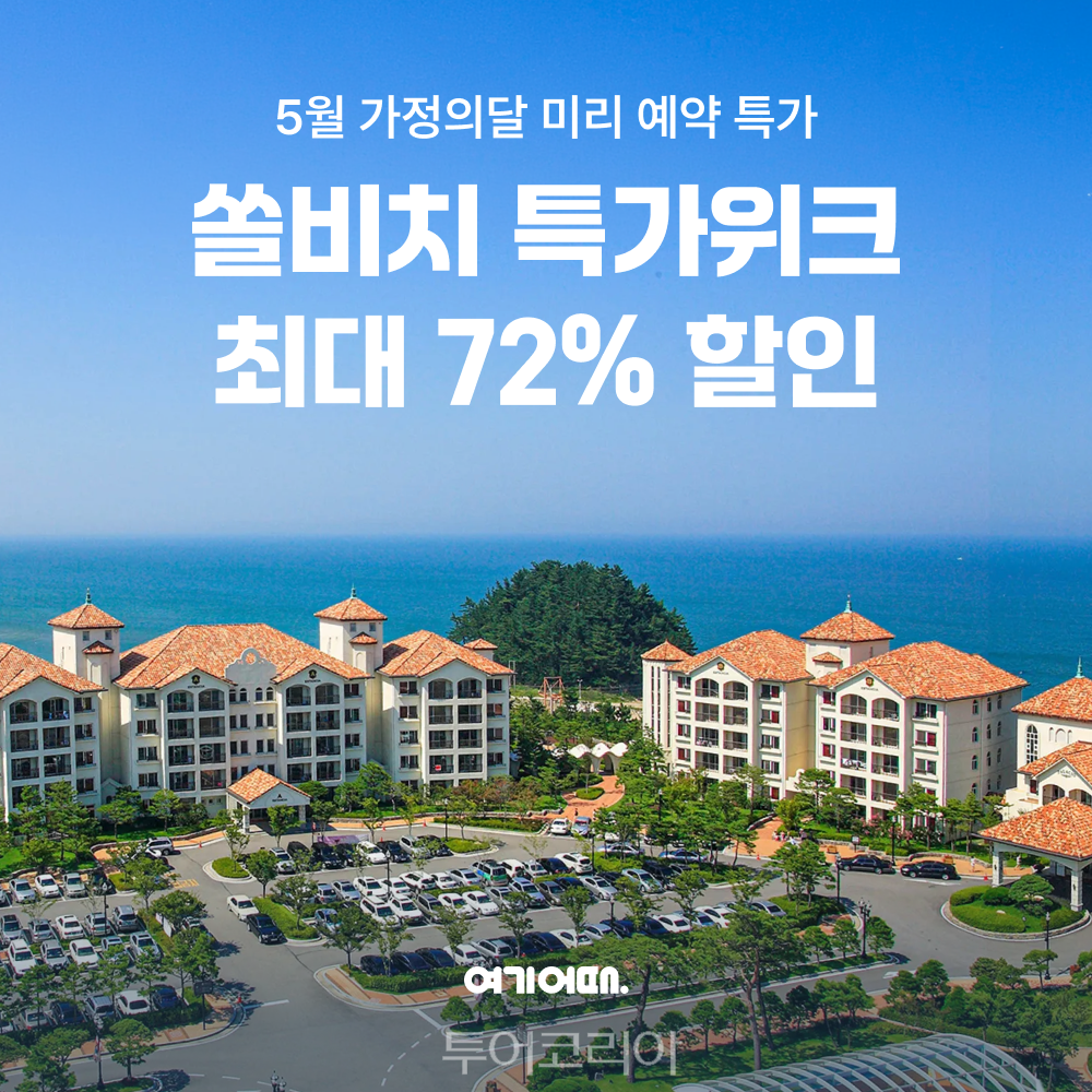 여기어때는 전국 쏠비치 호텔과 리조트 숙박 상품을 최대 72% 할인하는 단독 이벤트를 진행한다. 이번 행사는 쏠비치 진도, 삼척, 양양, 남해와 르네블루 바이 쏠비치 등 전국 주요 리조트에서 진행되며, 추가 할인 쿠폰을 적용하면 최대 5만 원까지 혜택을 받을 수 있다. 예약 가능한 체크인 기간은 대부분 5월 말까지로, 봄 여행과 가정의 달 수요를 겨냥한 프로모션이다.
