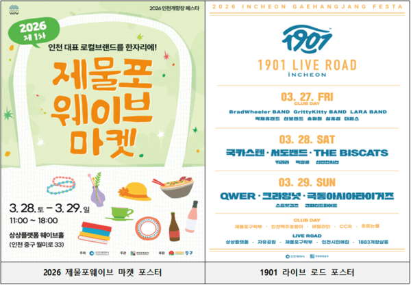 이와 연계해 진행되는‘2026 제물포웨이브 마켓’은 개항기 다양한 문화 교류의 중심지였던 제물포의 정체성을 현대적으로 재해석한 공간이다. 지역 브랜드의 가치와 이야기가 하나의 ‘물결(Wave)’처럼 확산되는 콘셉트로 구성됐다. 식음료, 공예, 패션, 라이프스타일 등 다양한 분야의 인천 로컬 브랜드 42개 업체가 참여해 지역 기반 상품과 콘텐츠를 선보일 예정이다.