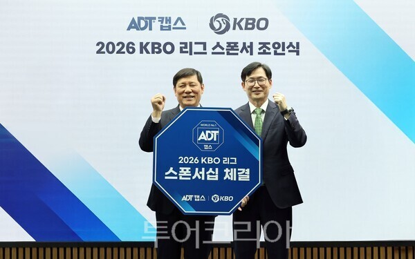 [투어코리아=최인철 기자] SK쉴더스의 물리보안 브랜드 ADT캡스가 한국야구위원회(KBO)와 '2026 KBO 리그' 공식 스폰서십 계약을 체결했다. ADT캡스는 이번 협력을 통해 그라운드 위 수비의 가치를 조명하고, 브랜드 핵심 메시지인 '안전과 보호'를 야구팬들에게 자연스럽게 전달한다는 계획이다.