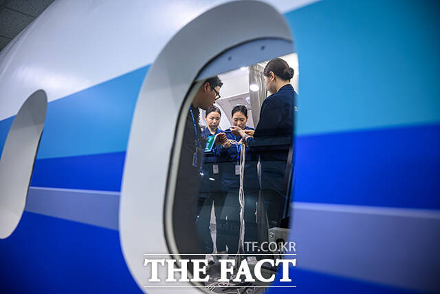 파라타항공·유한대, 항공훈련센터 개소…'안전 운항위해 훈련하는 승무원들' [TF사진관]