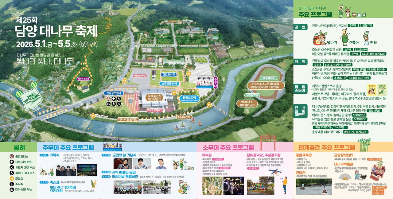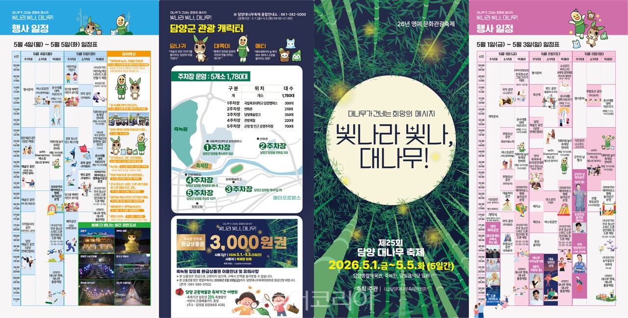 볼거리 역시 한층 풍성해졌다. 개막식에서는 담양의 새로운 관광 캐릭터를 공개하는 브랜드 선포식이 진행되며, 행사장 곳곳에는 캐릭터 팝업스토어와 포토존이 조성돼 방문객 참여를 유도한다.