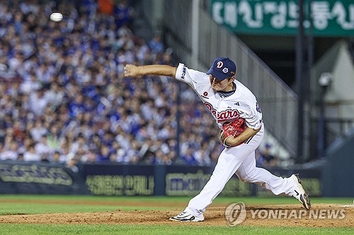 두산 마무리 김택연, 어깨 염좌로 말소…"2~3주 후 재검사"