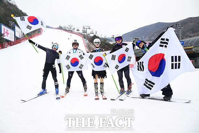 곤지암리조트, 동계올림픽 국가대표 응원…활주하는 '빙상·설상 국가대표들' [TF사진관]