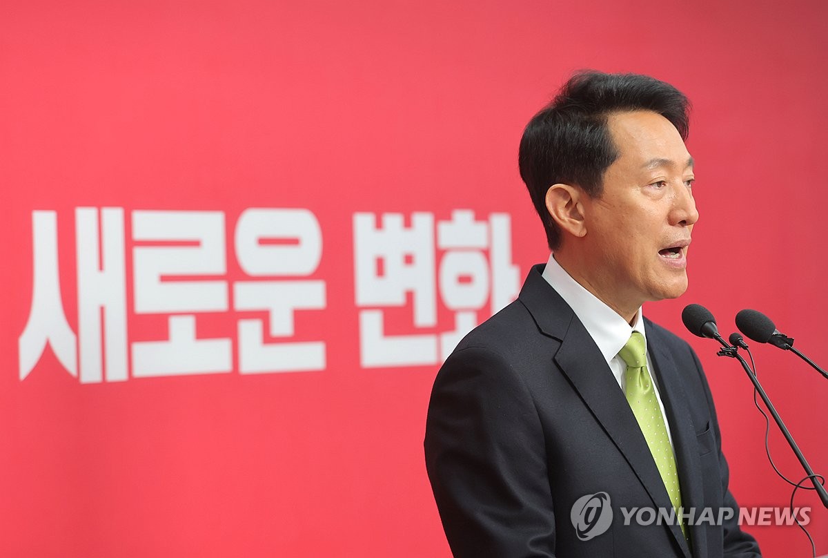 (서울=연합뉴스) 류영석 기자 = 6·3 지방선거 국민의힘 서울시장 후보로 확정된 오세훈 서울시장이 18일 서울 여의도 국민의힘 당사에서 기자회견을 하고 있다. 2026.4.18 ondol@yna.co.kr